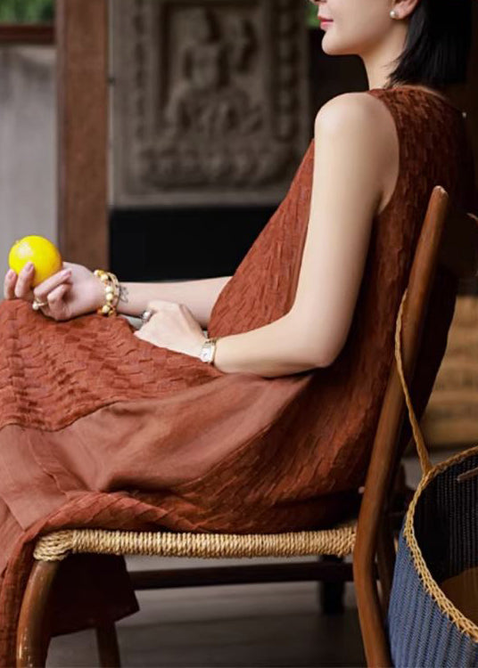 Elegant Red O Neck Patchwork Cotton Long Dresses Sleeveless WN025