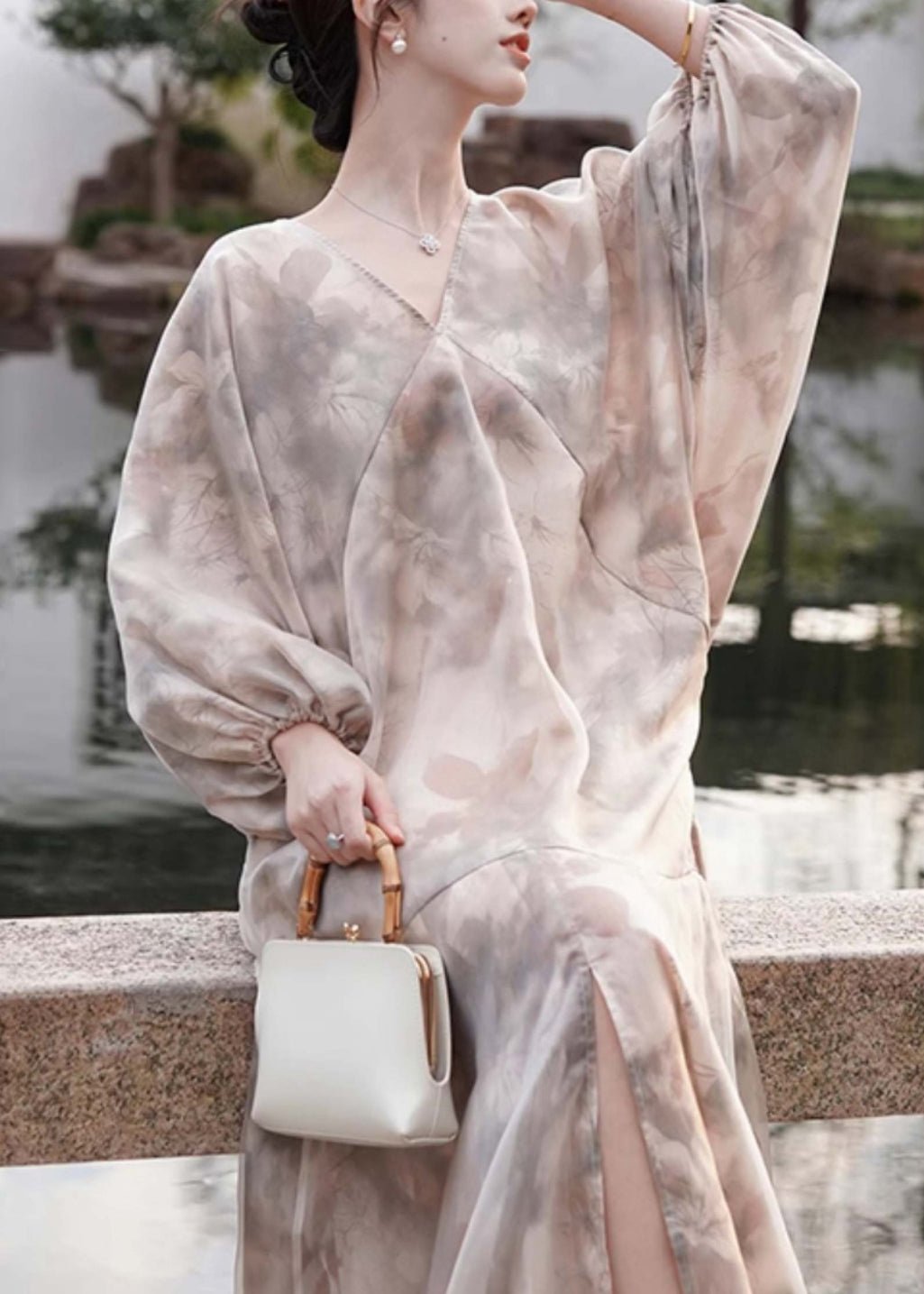 Indulge in the sophistication and exclusivity of our Elegant V Neck Print Patchwork Party Long Dress for the Spring season.