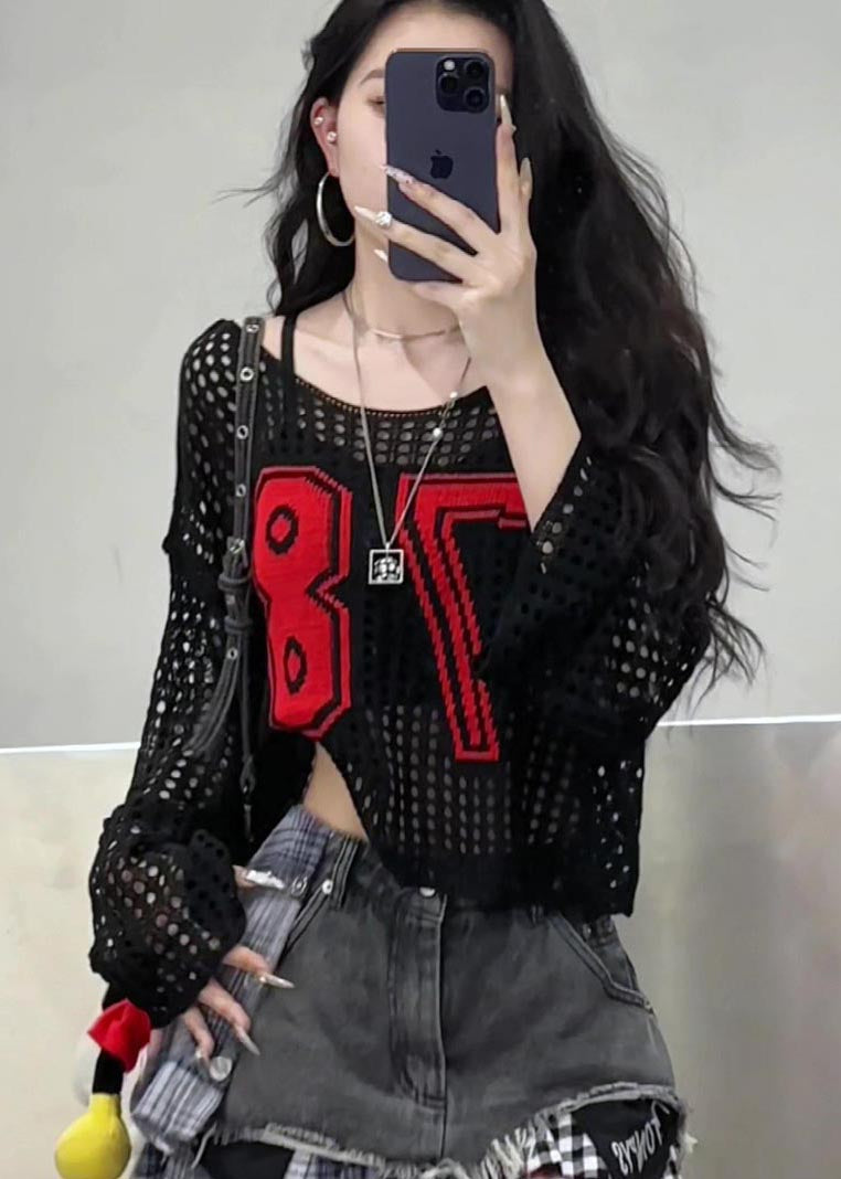 Embroidered Hollow Classy Summer Tops Out Yellow Knit