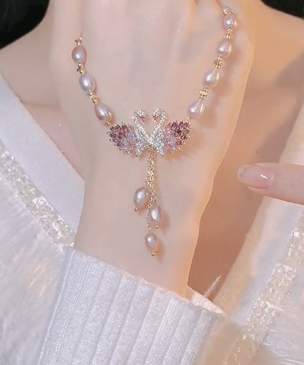Exude elegance and refinement with our exquisite Fashion Light Purple Copper Overgild Swan Pearl Pendant Necklace. Enhance your style with this luxurious piece, crafted with precision and fine details.