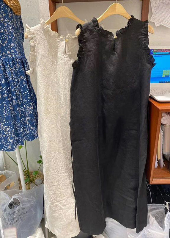 Fashion Loose Beige Ruffled Cotton Dresses Summer WW1020