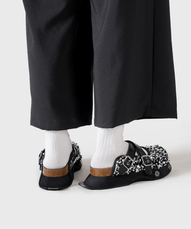 Experience luxury and sophistication with our Fashion Platform Slide Sandals. Crafted from premium black cowhide leather and adorned with shimmering sequins, these sandals exude elegance and exclusivity. Step into the world of high fashion with every step.