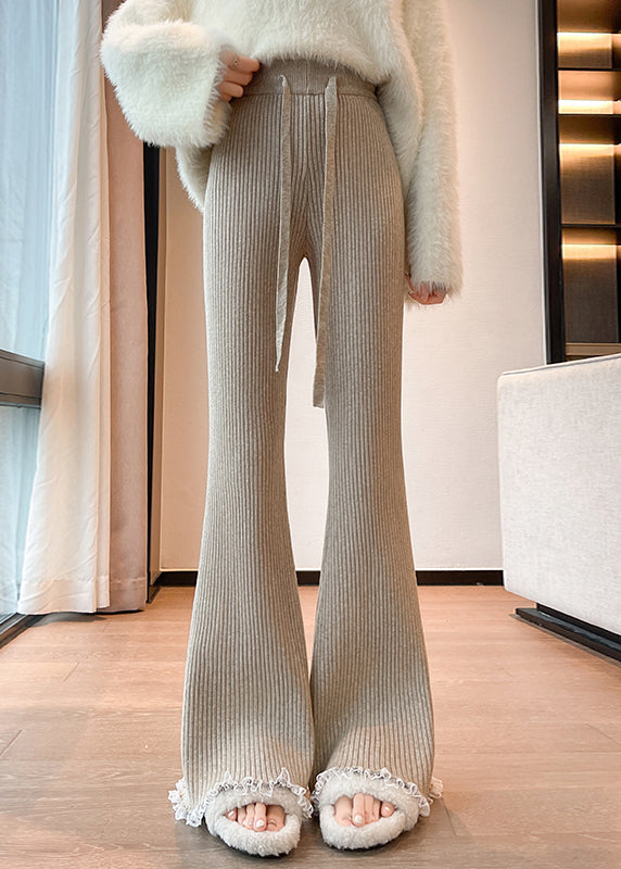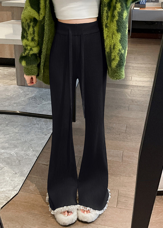 Effortlessly combine elegance and comfort with our ravishing Fashion Red Drawstring Lace Patchwork Knit Flared Trousers, perfect for the spring season.