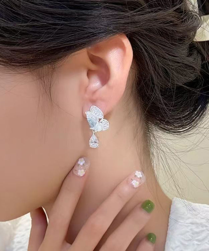 Fashion Stylish Blue Metal Alloy Butterfly Tassel Drop Earrings WZ017