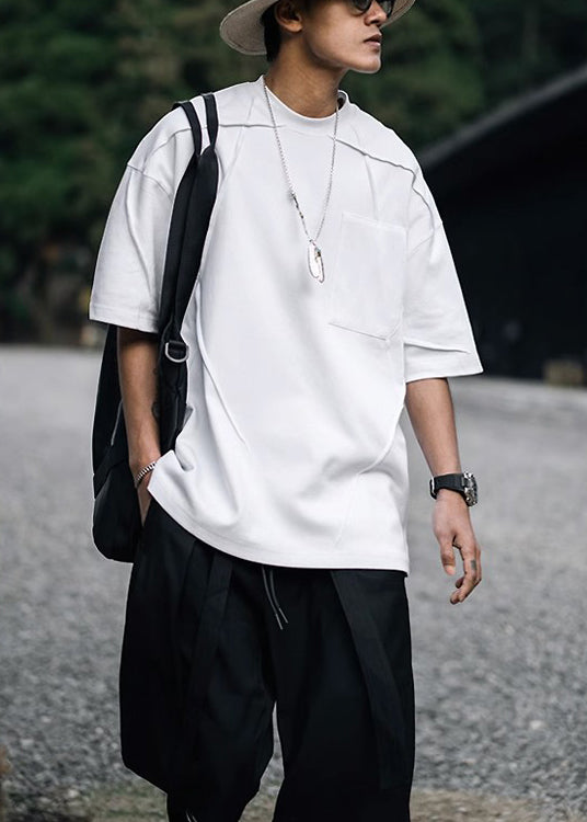 Fashion White Embroideried Patchwork Cotton Mens T Shirt Designer Summer WA001