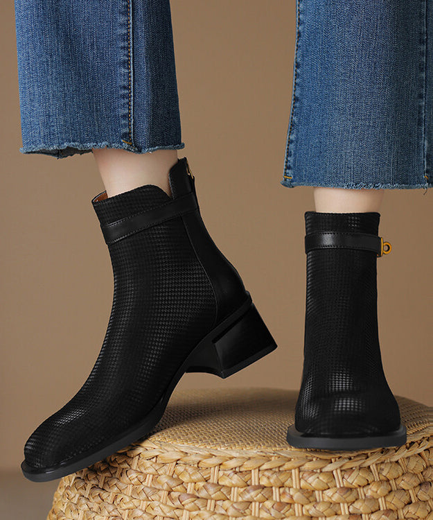 Indulge in the luxurious elegance of our Fashion Zippered Splicing Chunky Boots in Khaki Cowhide Leather. Step out in style with these premium boots, crafted from high-quality leather.