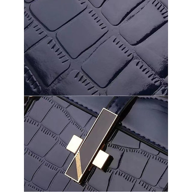 Gender: Women's, Type: Crossbody Bag, Shoulder Bags, Material: PU Leather, Patent Leather, Embellishment: Zipper, Pattern: Crocodile, Solid Color, Detachable strap: Detachable, Adjustable strap: Adjustable, Occasion: Mother's Day, Office, Casual Daily, Width (cm): 13, Height (cm): 25, Length (cm): 33, Function: Waterproof, Multi Carry, Category: Handbag,