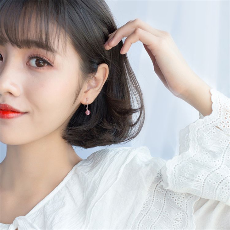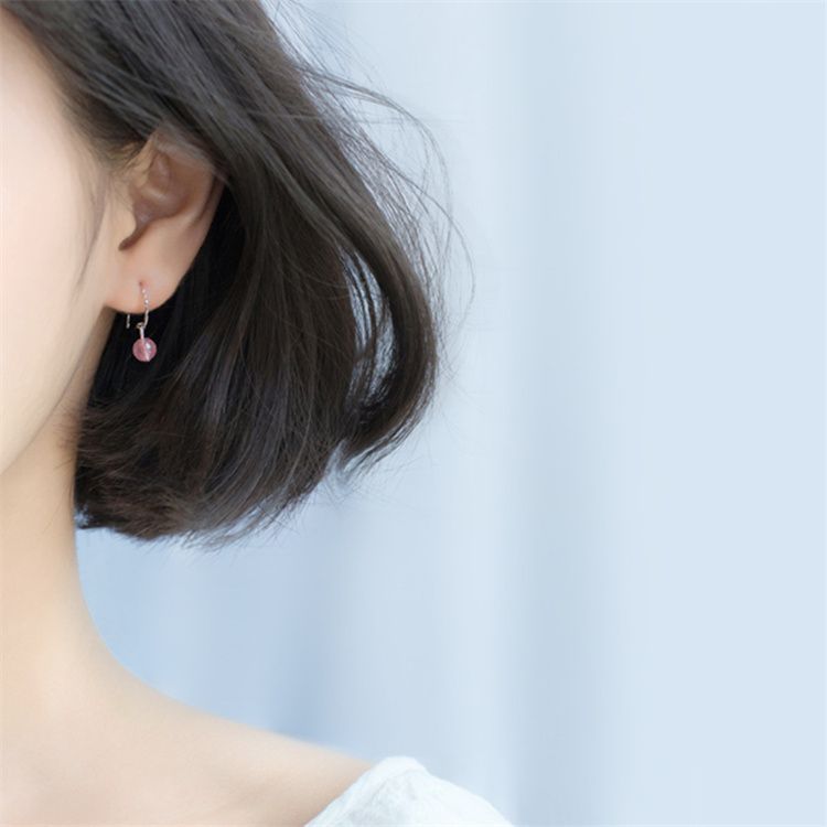 Cute Pink Crystal Pearl Tulle Floral Tassel Drop Earrings LL007