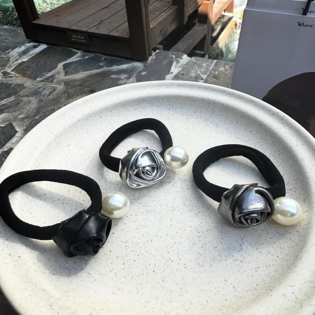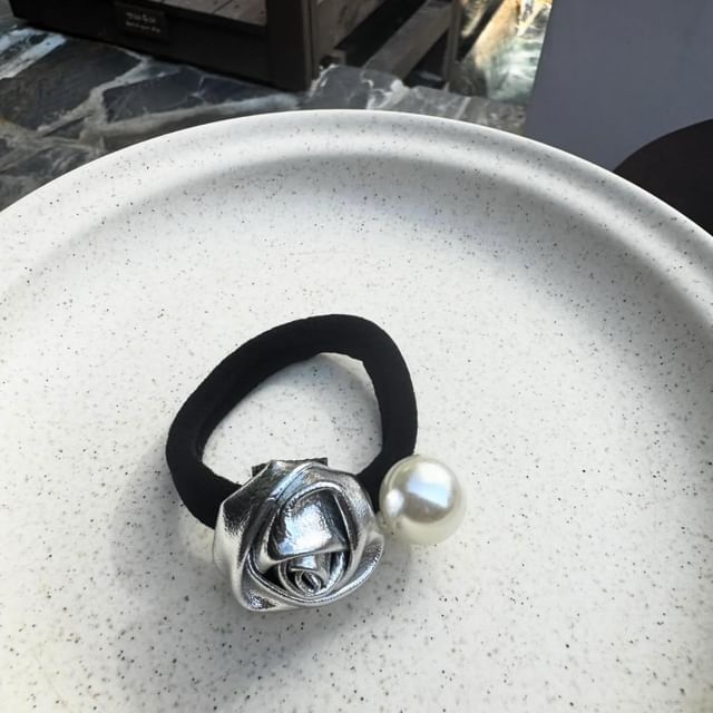Flower Faux Pearl Hair Tie