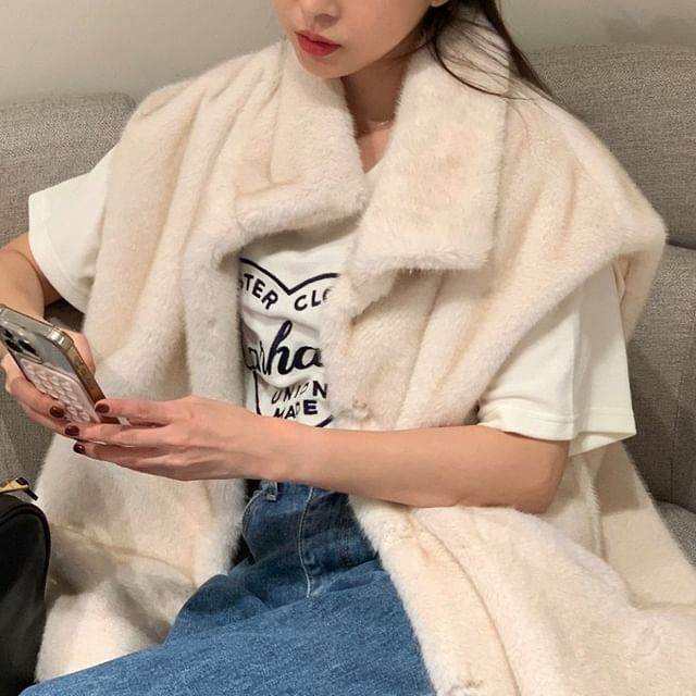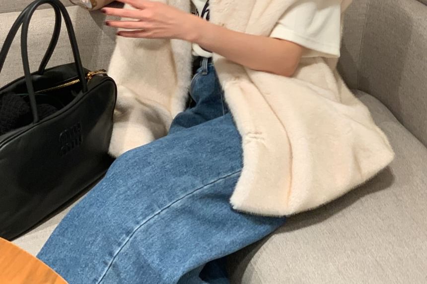 Faux Fur Collared Button-Up Vest
