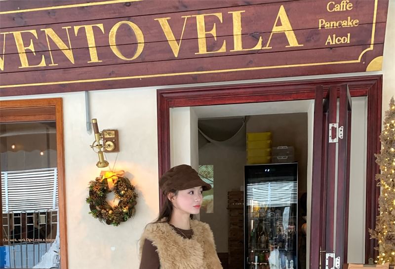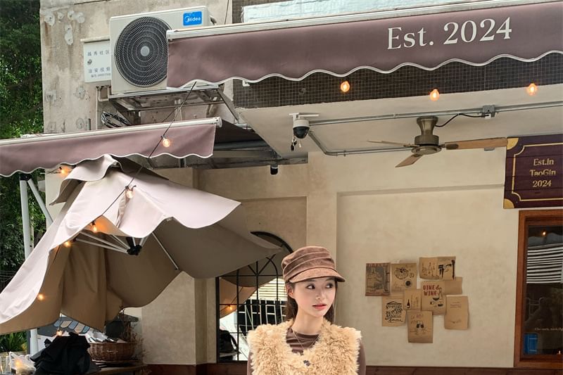Faux Fur Vest / Long-Sleeve Top / High Rise Maxi A-Line Skirt