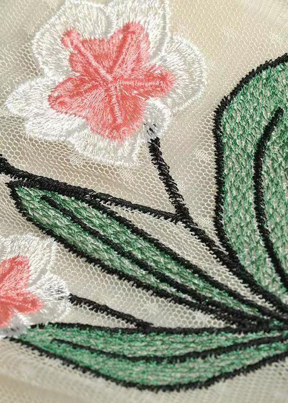 Fine Apricot Square Collar Embroidered Patchwork Tulle Dress Long Sleeve XX074