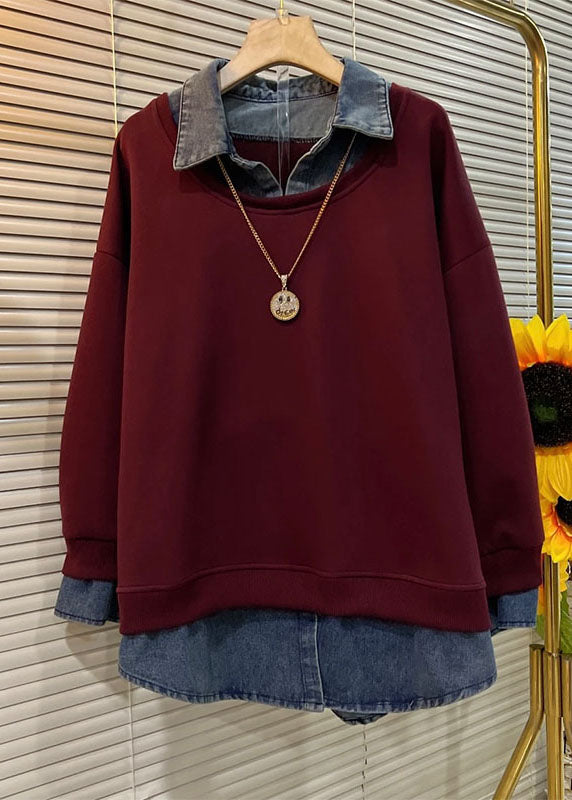 Fine Black Peter Pan Collar Patchwork False Two Pieces Cotton Shirt Tops Fall QL048
