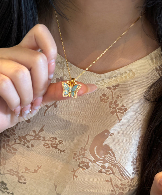 This exquisite necklace exudes sophistication with its intricate blue ancient Dharma gold design and sparkling zircon butterfly pendant. A perfect addition to any ensemble, it adds a touch of elegance and grace. Embrace luxury and elevate your style with this one-of-a-kind necklace.