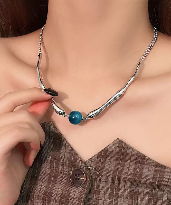 Fine Blue Metal Asymmetric Beads Pendant Necklace RA009