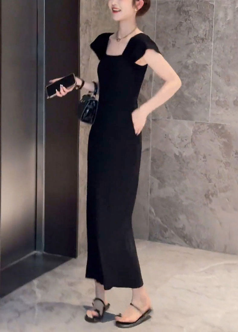 Slim Fit Square Collar Striped Pockets Cotton Long Dresses Summer