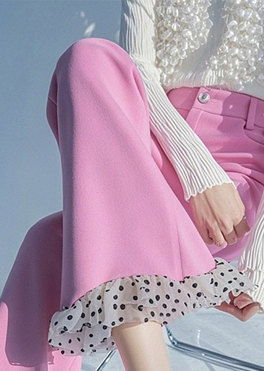 New Pink Dot High Waist Patchwork Flare Bottoms Spring