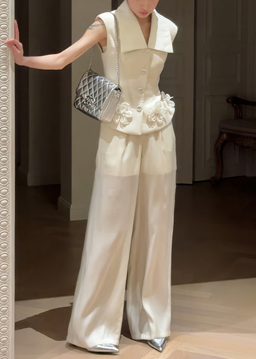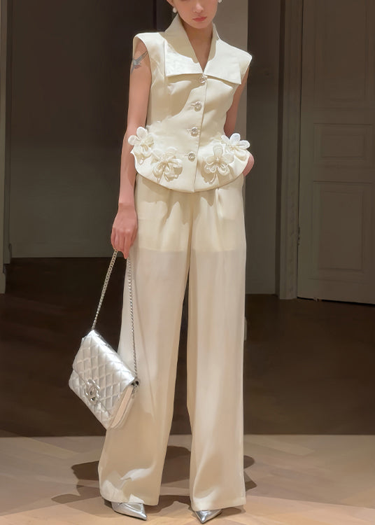 Experience the sophistication and luxury of our Floral Beige Button Pockets Cotton Two Piece Set Sleeveless, crafted from the finest materials for an elegant and exclusive look.