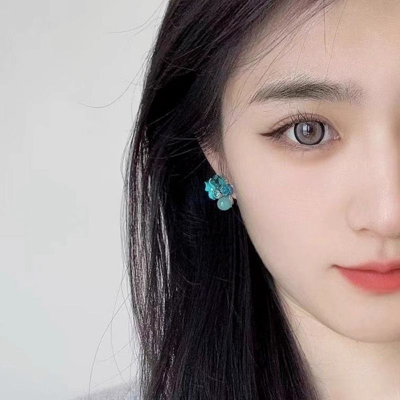 Retro Green Sterling Silver Overgild Jade Water Drop Drop Earrings LL001