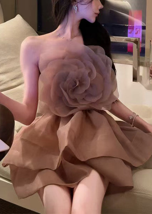 Floral Solid Shoulder Mini Cold Sleeveless Coffee Dresses