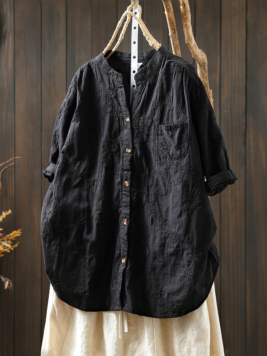 Flower 100%Cotton V-Neck Women Shirt Artsy Embroidery Summer
