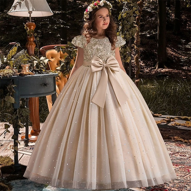 Gender: Girls', Age Group: Kids, Style: Sweet, Beautiful, Occasion: Birthday, Performance, Wedding, Party, Kids Apparel: Flower Girl Dress, Party Dress, Fabric: Polyester, Pattern: Color Block, Sleeve Length: Sleeveless, Design: Tie Knot, Age: 4 years+, Season: Summer, Look After Me: Hand wash, Dresses Type: Party Dress, Tulle Dress, Swing Dress, A Line Dress, Neckline: Crew Neck, Fit Type: Regular Fit, Dress Length (cm): Maxi,