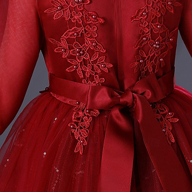 Gender: Girls', Kid's, Style: Elegant, Beautiful, Occasion: Performance, Wedding, Party, Birthday, Kids Apparel: Princess Dress, Fabric: Cotton, Pattern: Solid Color, Sleeve Length: Long Sleeve, Design: Mesh, Age: 4 years+, Season: Summer, Spring, Look After Me: Wet and Dry Cleaning, Washable, Length [Dress] (cm): 4 Years(110cm):60;4-5 Years(120cm):65;5-6 Years(130cm):70;7-8 Years(140cm):75;9-10 Years(150cm):80;11-12 Years(160cm):85, Fit Type: Regular Fit, Dress Length (cm): Above Knee, Function: Comfort, Neckline: Crew Neck,