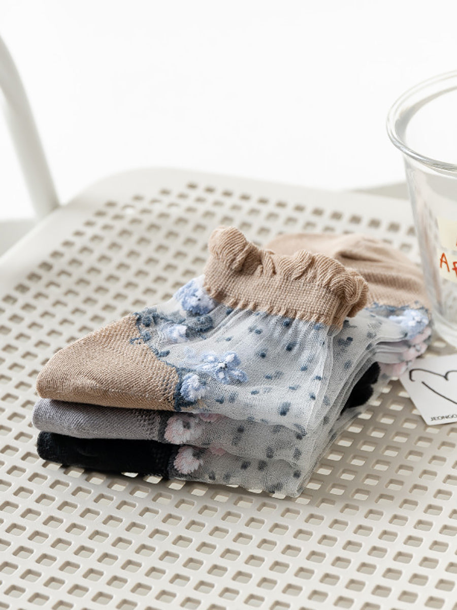 Flower Pairs Jacquard Artsy Lace Socks Women 3