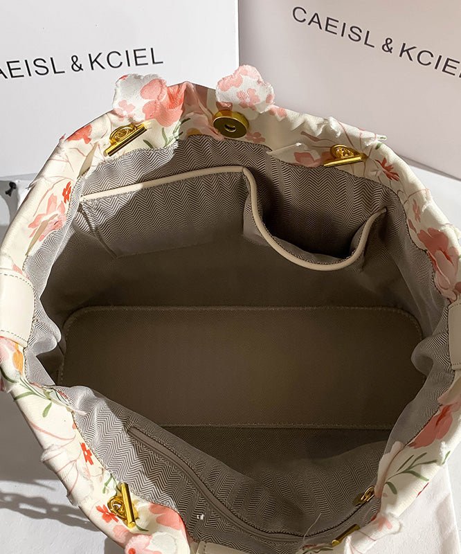 Original Design White Pink Flowers Faux Leather Shoulder Bag