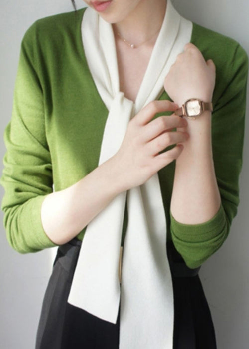 French Avocado Green Bow Lace Up Patchwork Cozy Top Long Sleeve TU009