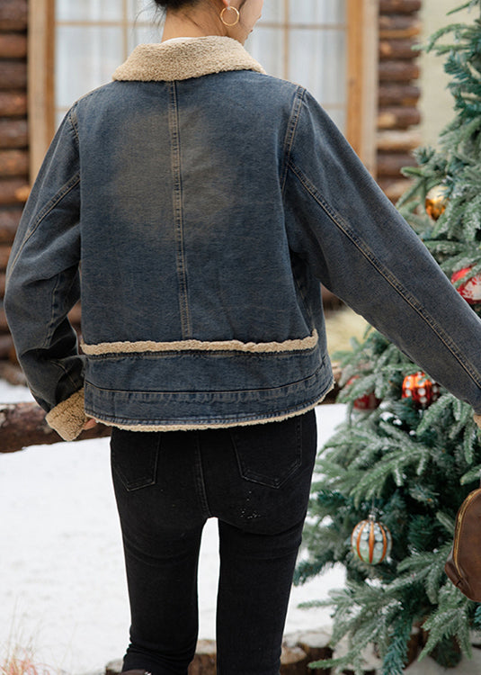 French Beige Button Patchwork Warm Fleece Coats Winter RY022