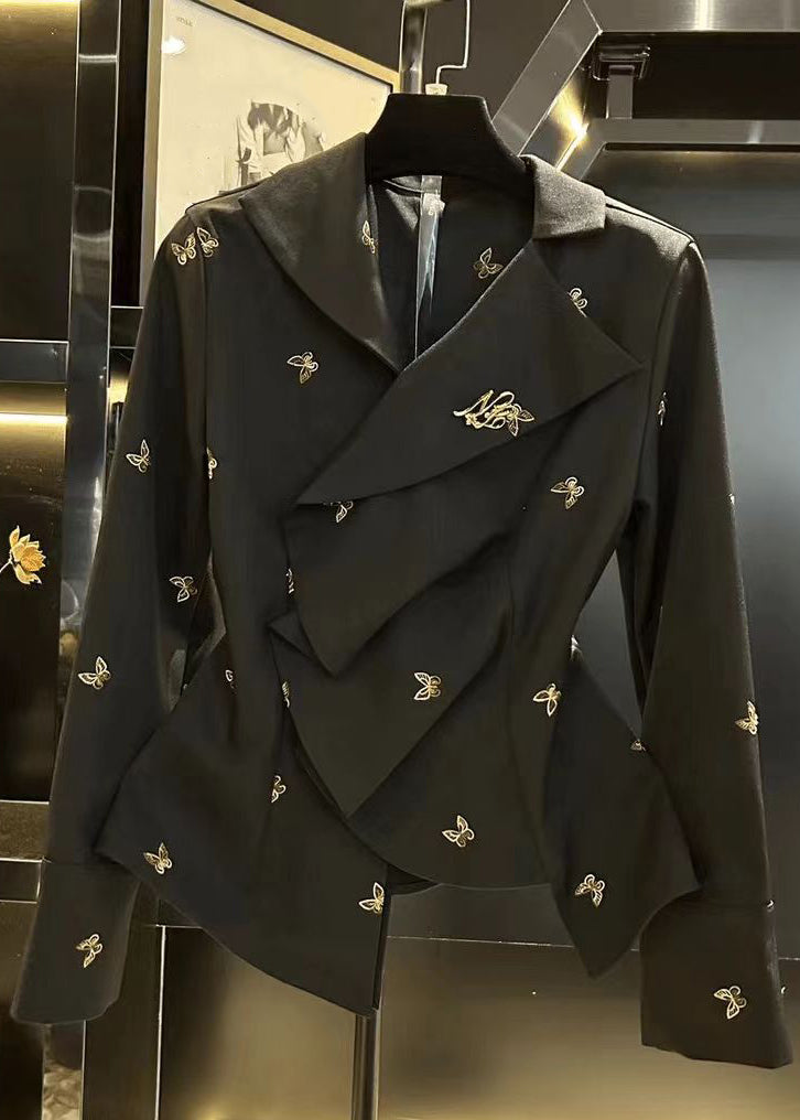 French Black Asymmetrical Butterfly Spandex Shirt Fall RK023