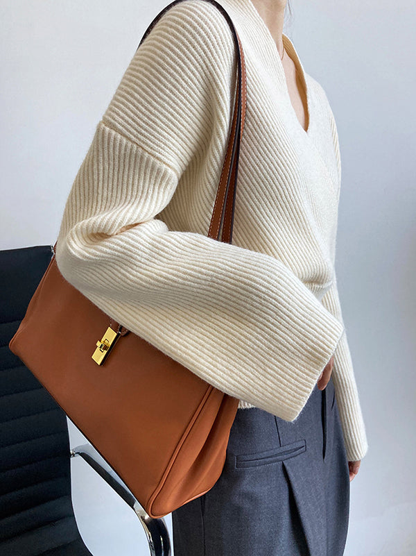 French Grey Cross V-Neck Long Sleeve Sweater QX012