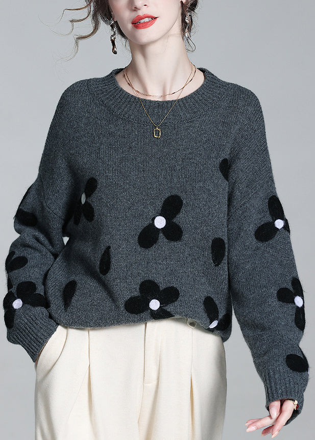 French Grey O Neck Cozy Patchwork Knit Sweaters Winter WQ050
