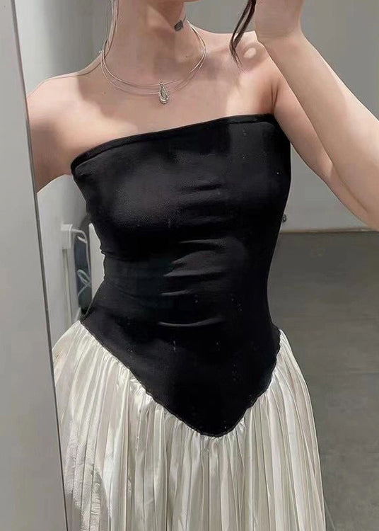 French Photo Color Strapless Patchwork Dresses Summer EE1026