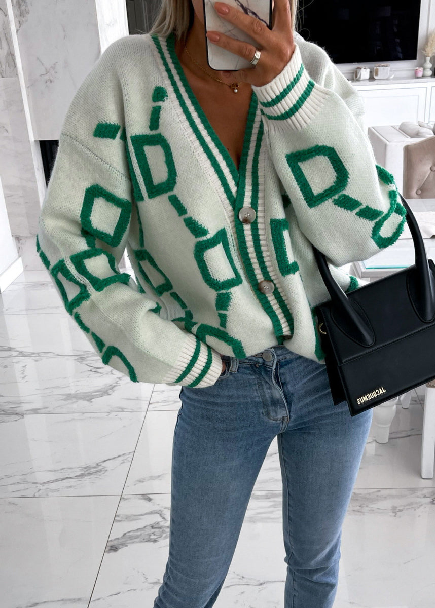 French Pink V Neck Graphic Embroidered Knit Cardigan Fall QY021
