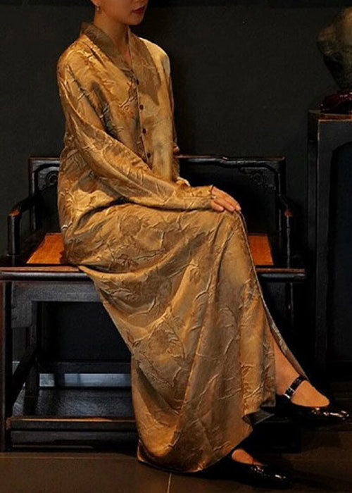 French V Shirts Fall Dresses Neck Button Silk Print