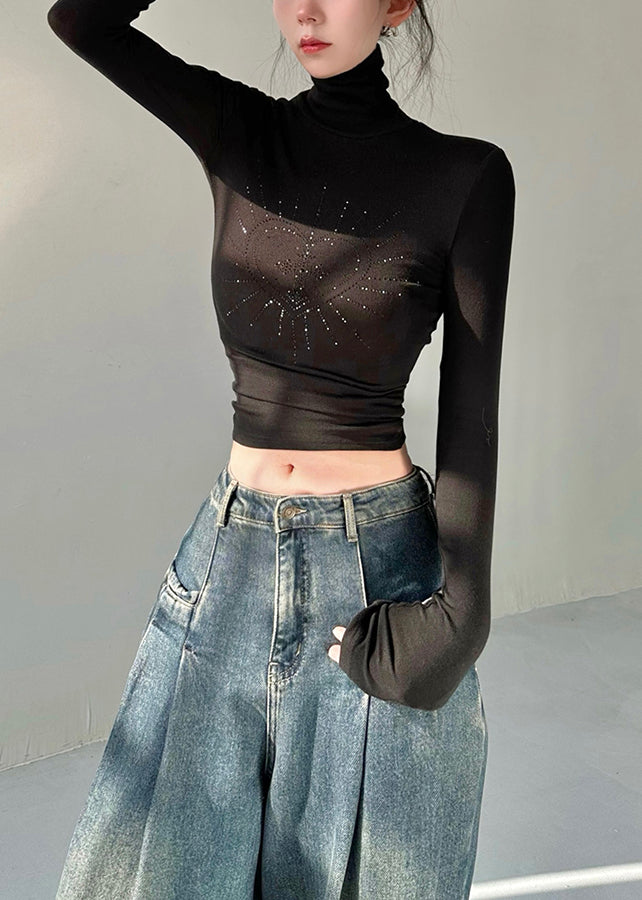 Indulge in luxury with our French White High Neck Zircon Cotton T Shirts Top. Made from high-quality cotton, this top offers both comfort and style. Its high neck design and zircon embellishments add a touch of elegance. Perfect for fall, it's a must-have addition to your wardrobe.