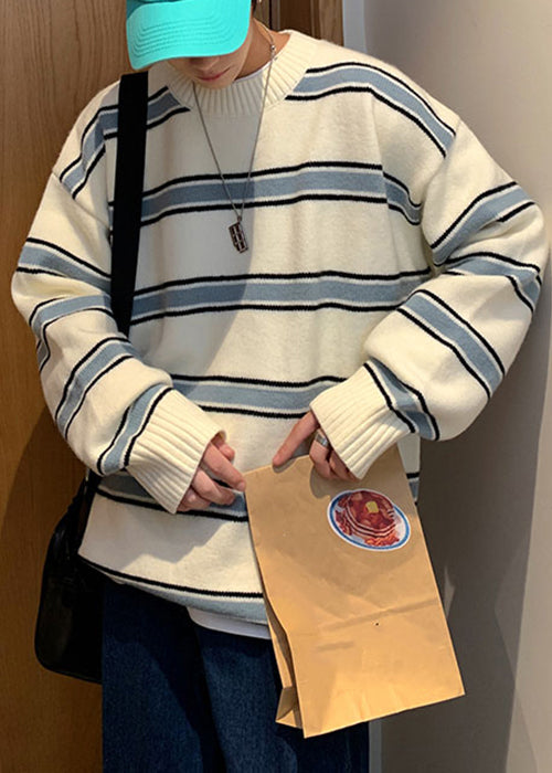 French White Striped Cozy Knit Men Sweaters Winter QF039