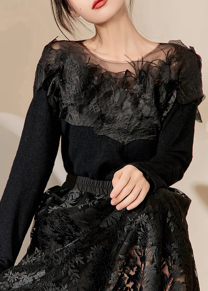 Experience the elegance and exclusivity of our French White Tulle Patchwork Knit Tops this Fall season. Indulge in the sophisticated and luxurious style, inspired by the worlds of art, literature, and fashion. Don't miss out on this premium addition to your wardrobe.