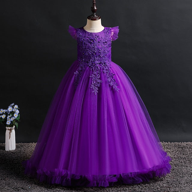 Gender: Girls', Age Group: Kids, Style: Cute, Princess, Occasion: Wedding, Party, Special Occasion, Kids Apparel: Flower Girl Dress, Dress, Fabric: Polyester, Pattern: Jacquard, Sleeve Length: Sleeveless, Design: Mesh, Age: 4-12 Years, Season: Summer, Winter, Fall, Spring, Look After Me: Hand wash, Festival: Children's Day, Dress Length (cm): Maxi, Dresses Type: Pink Princess Dress, Flower Girl's Dress,