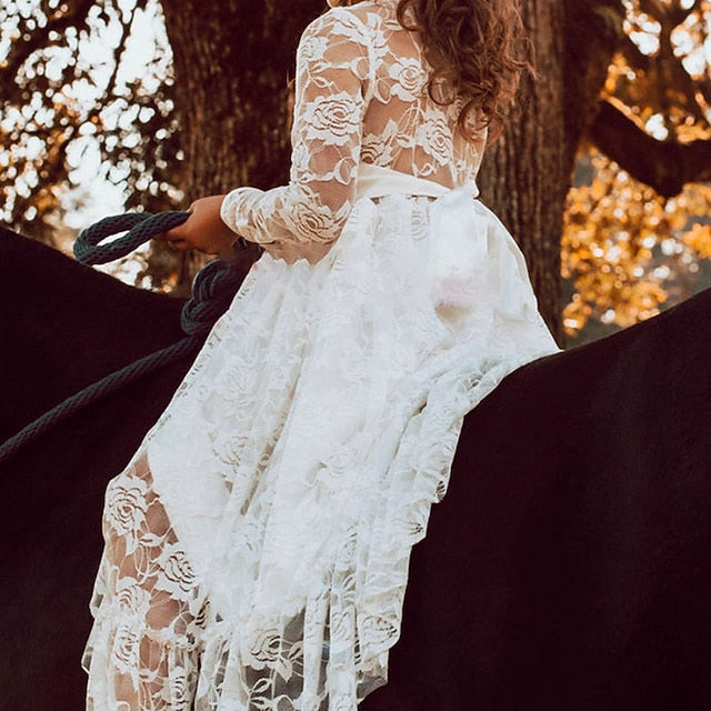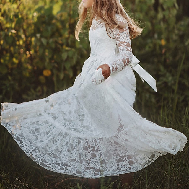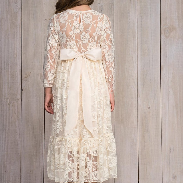 Gender: Girls', Age Group: Kids, Style: Cute, Princess, Occasion: Daily, Party, Wedding, Kids Apparel: Flower Girl Dress, Dress, Fabric: Cotton, Pattern: Solid Colored, Sleeve Length: Long Sleeve, Design: Lace, Mesh, Embroidered, Age: 3-12 Years, Season: Winter, Fall, Look After Me: Hand wash, Elasticity: Micro-elastic, Dresses Type: A Line Dress, Tulle Dress, Fit Type: Regular Fit, Dress Length (cm): Maxi,