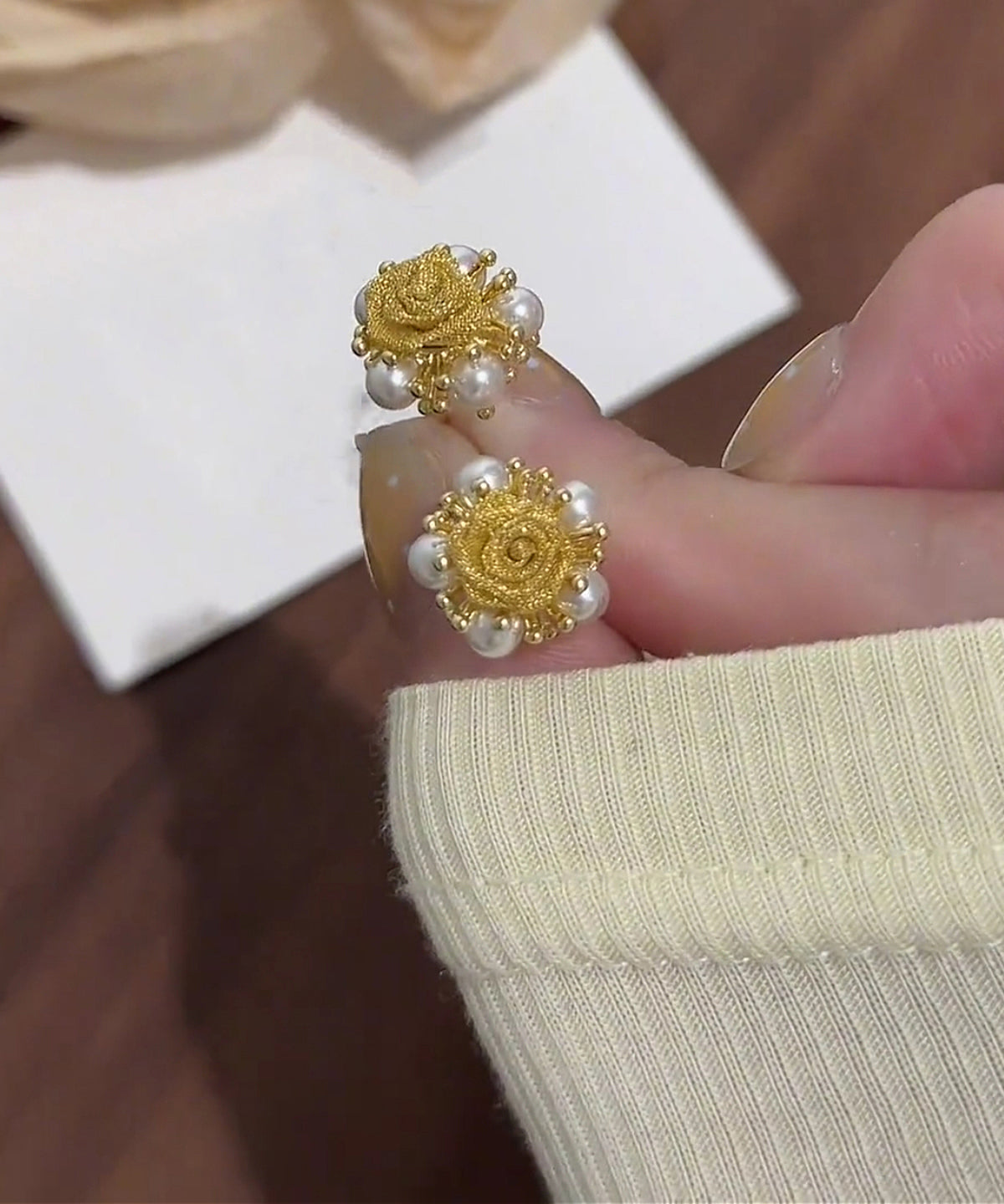 Vogue Gold Copper Alloy Graphic Pearl Stud Earrings