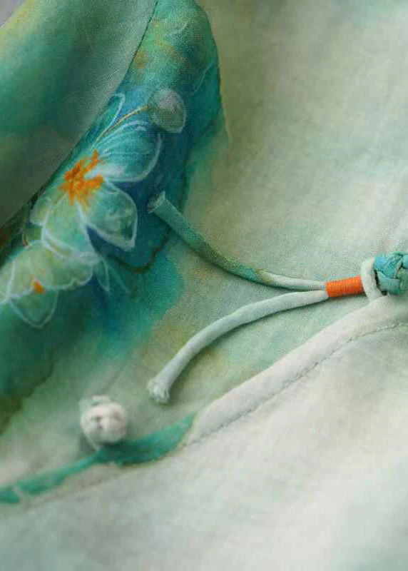 Grace Pink O Neck Print Chinese Button Linen Blouse Top Fall QB031