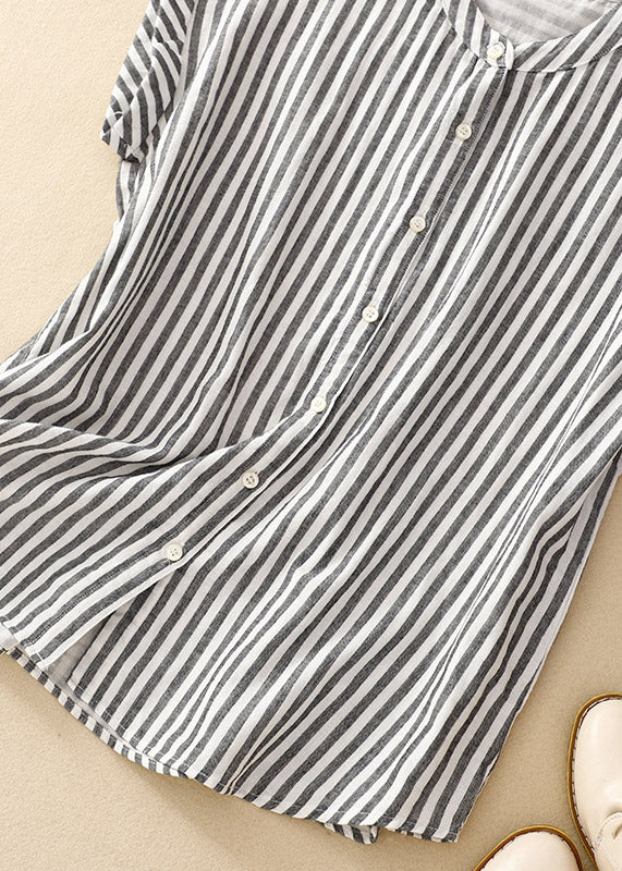 Indulge in the sophisticated style of Grace Size's Stand Collar Plaid Button Cotton Shirts for the perfect summer ensemble.