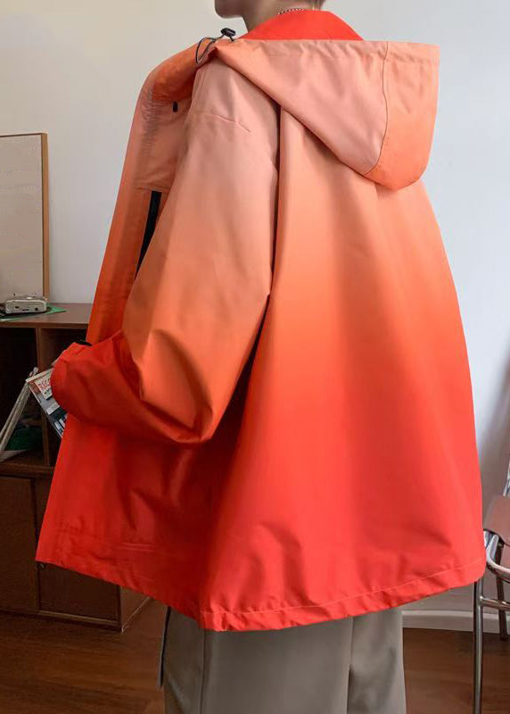 Loose Grey Gradient Color Hooded Zippered Cotton Mens Coats Spring
