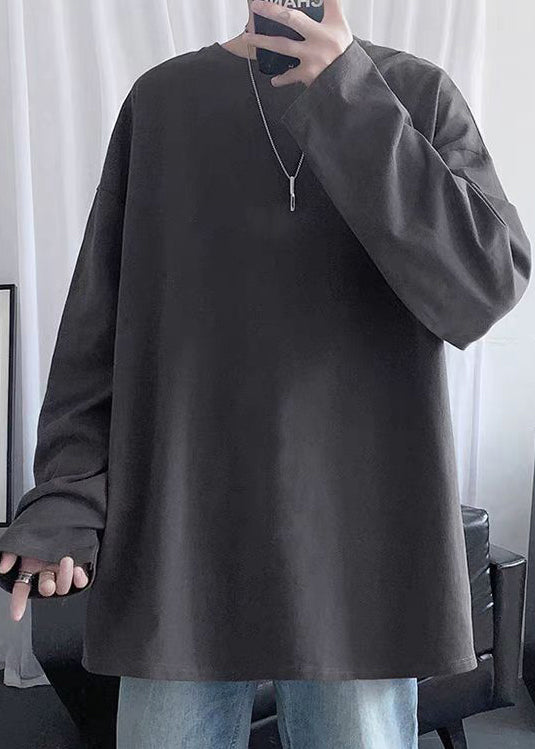 Gray T Mens Cotton Simple Neck Dark Spring Solid Shirt O