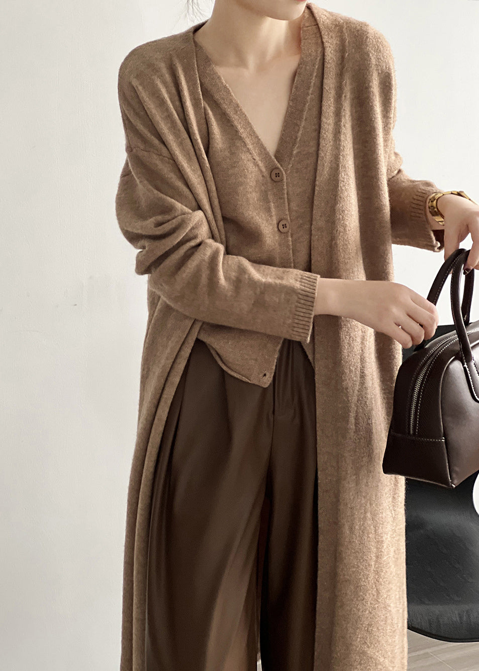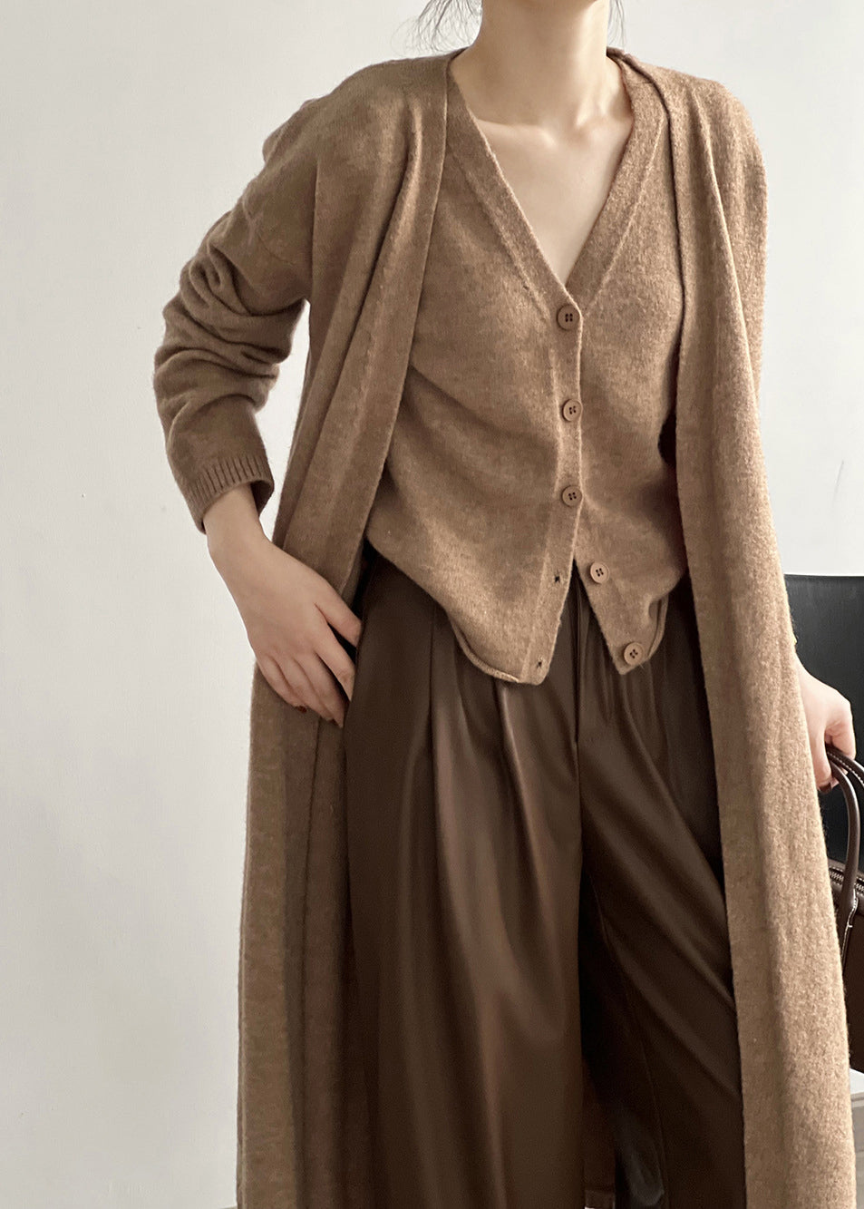 Grey Button Knit Two Pieces Set V Neck Tank And Cardigan Fall AF1061