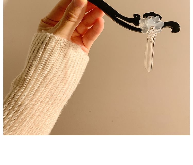 Cute Pink Crystal Pearl Tulle Floral Tassel Drop Earrings LL007
