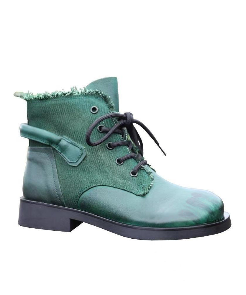 Handmade Comfy Brown Cowhide Leather Splicing Boots Lace Up OM003